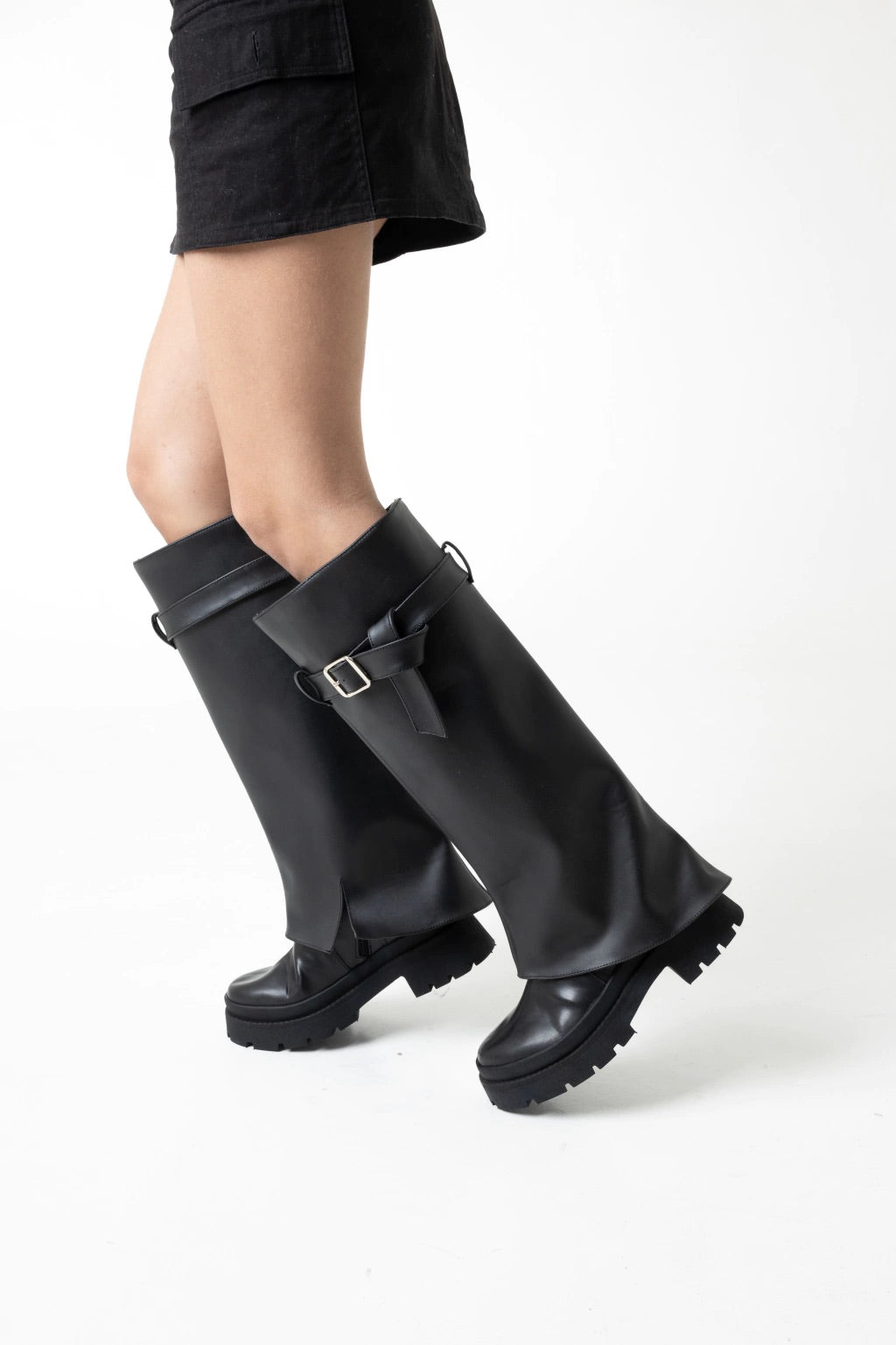 Botas con botamanga de ecocuero. Altura de caña 40 cm, taco de 4 cm y ancho de caña 40 cm.Industria Argentina.