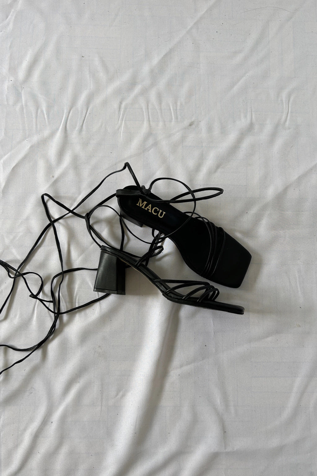 Sandalias de cuero con tiras y punta cuadrada, con taco de 6cm de alto. Industria Argentina.