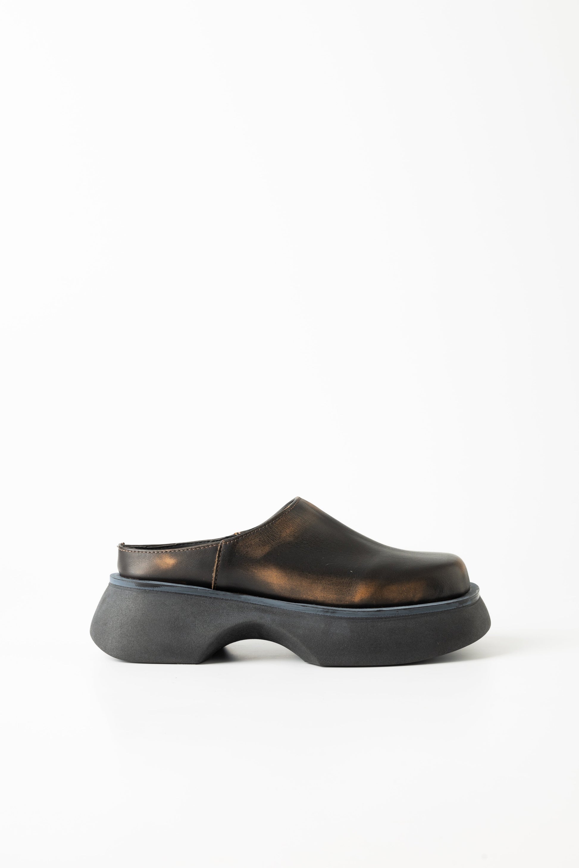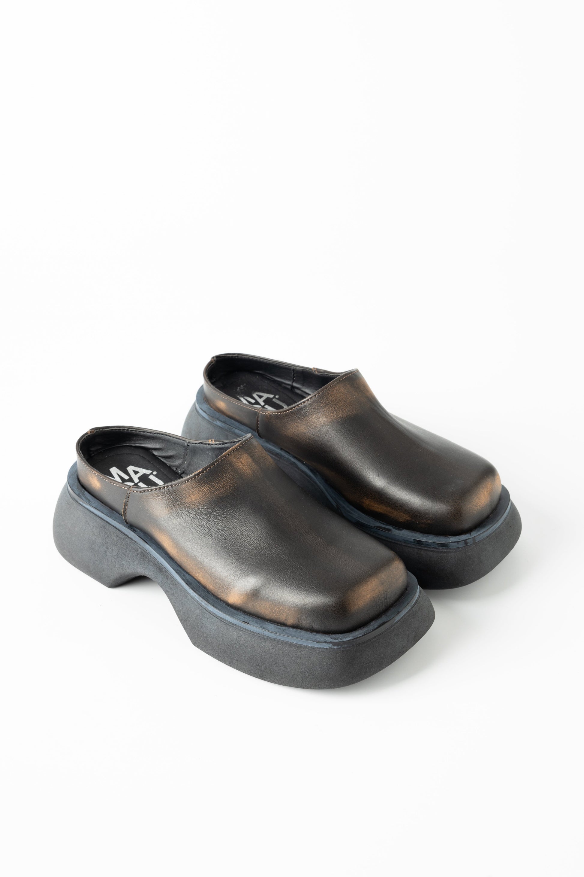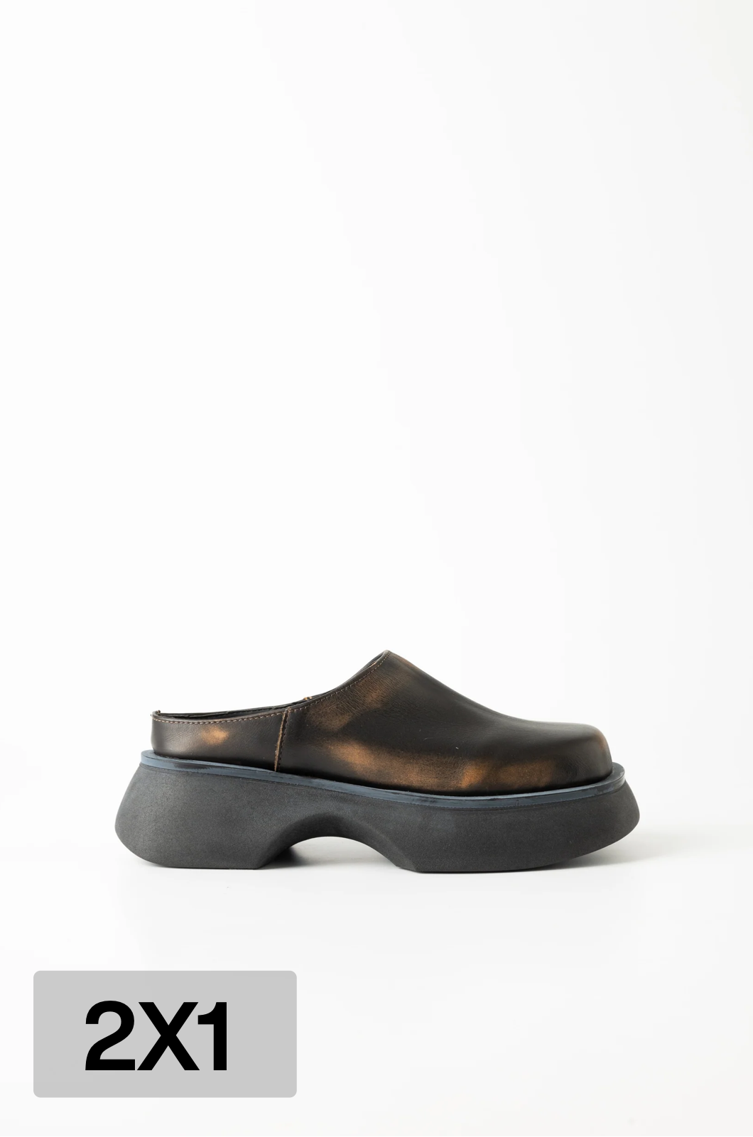 Zuecos de cuero, con base de 4.5 cm. Industria Argentina.